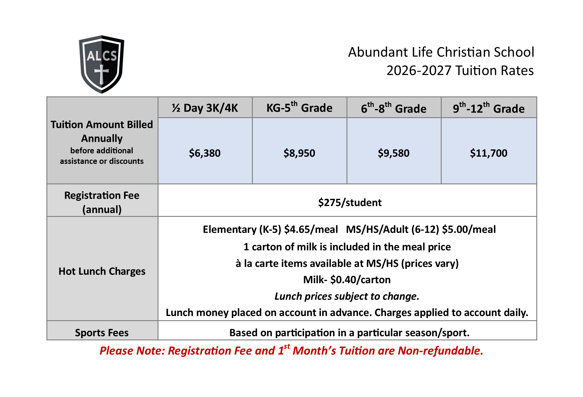 Tuition Rates